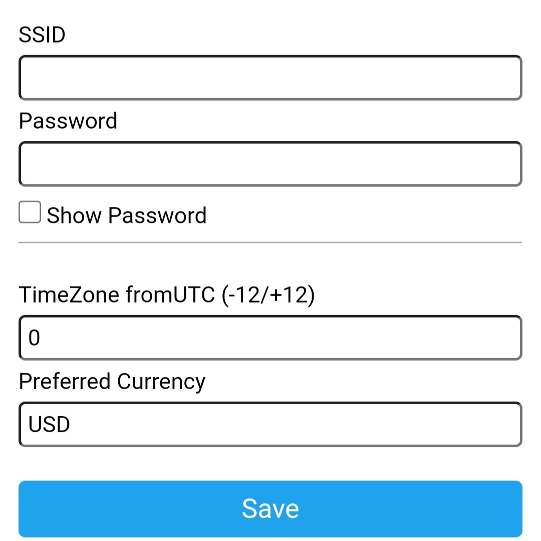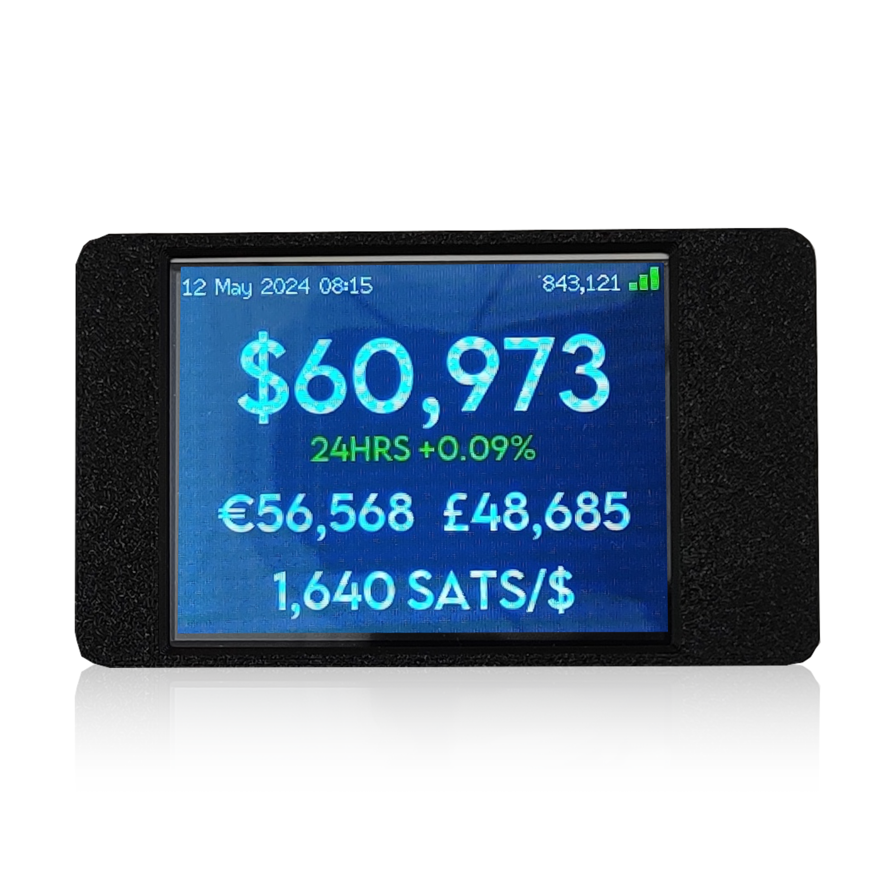 This large screen Price Ticker prominently displays the Bitcoin exchange price in your preferred Fiat currency (choose from USD, GBP or EUR at setup).