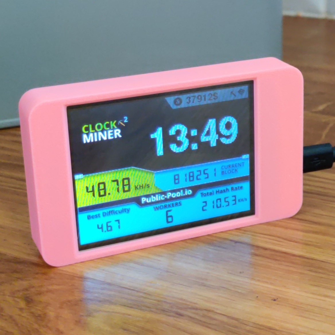 The new large format screen (2.8″) includes an ever-present pool monitor, allowing you to keep tabs on all of your miners at a glance.
