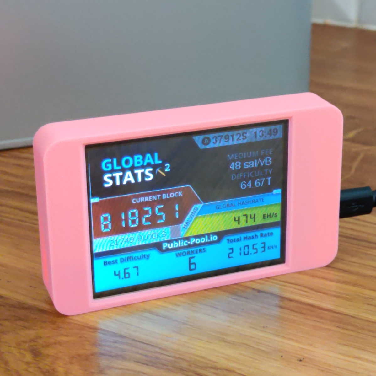 The BitMaker NerdMiner V2 in a new large format, fully built and ready to mine – complete with a simple yet beautiful case in a range of colours (back cover designs are random – if you’d like one in particular, just leave a note with your order).