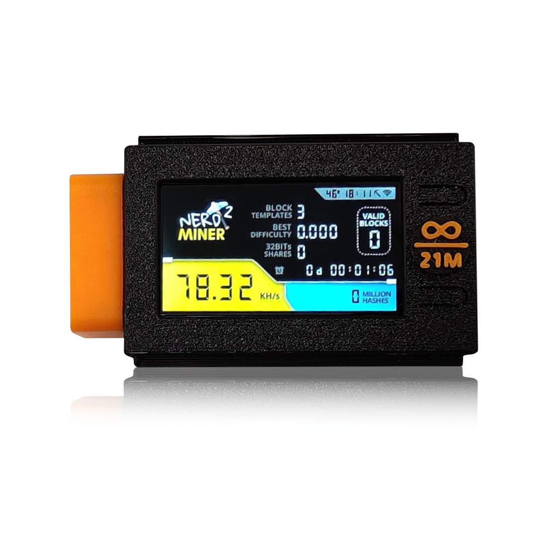 PLEASE NOTE: To give you the best price possible, these NerdMiners will be shipped with a 3D printed fan for aesthetics only (there’s no need for a fan and they just add unnecessary noise and electricity consumption). However, the 3D printed fan can easily be replaced with a real one.