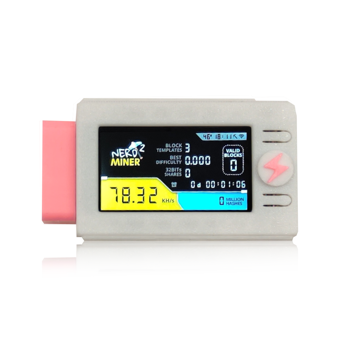 HUGE thanks to everyone who contributed to the NerdMiner project, including @SileExperience for the original design, @m_mikpoly for the buttons and the NerdMiner (@BitMaker_) team for the software.